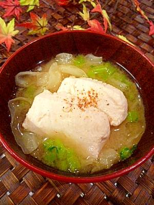 おみそ汁レシピ一覧|おみそ汁(味噌汁)の作り方|マルコメ お湯ポチャレシピ®焼き麩と小松菜のみそ汁 顆粒みそはサッと溶けるのでみそ汁が簡単にできあがります。 乾燥具材と一緒にストックしておくと災害時でも温かいみそ汁が食べられます